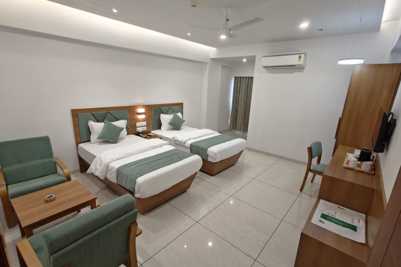 Hotel Darshan is conveniently located near the G.I.D.C. industrial area and offers a total of 37 well-appointed rooms, operational since January 2021, categorized as Silver, Gold, and Platinum, designed to meet the requirements of corporate and business travellers. All rooms are equipped with modern amenities to ensure a comfortable and pleasant stay.